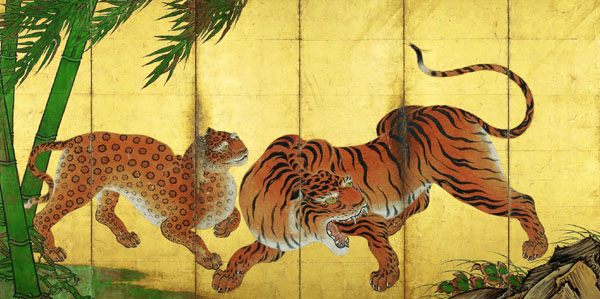 | Title in Japanese | : | 古の屏風絵の、暁の大地に立ち現われし勇虎 |